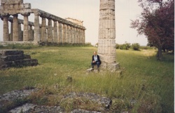 Right, from top: with Madeleine Canney at Newlyn Art Gallery, 1995; revisiting Paestum, 1989