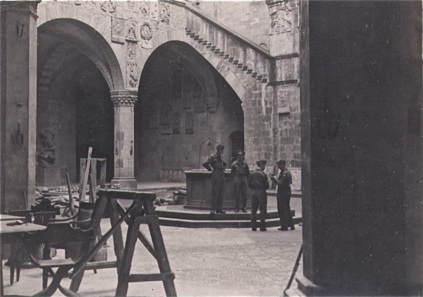 Our small detachment from Potenza lived and slept in the Cella del Priore, and it is quite possible that this room was used by larger groups of soldiers from the Royal Engineers at Potenza, who came to carry out the actual repairs to the building, at a later date. Although my memory is now rather vague, I do recall stories of Fascist internees being encouraged to assist in repairs to the roof of the Chiostro Grande, a task that they did not much enjoy, in view of the height!