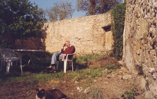 [Michael Canney pictured at their new home in France, below, with Cin-Cin, the Siamese attack cat acquired in Italy].
