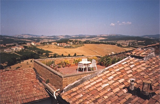 The following are extracts from letters sent by Michael Canney (and some by Madeleine) from their home at Palazzone, Casole d’Elsa, Siena (the terrace is pictured, below), during seven years in Italy, from 1984 to 1991, reproduced here to give a flavour of artistic work and life in general at that time.